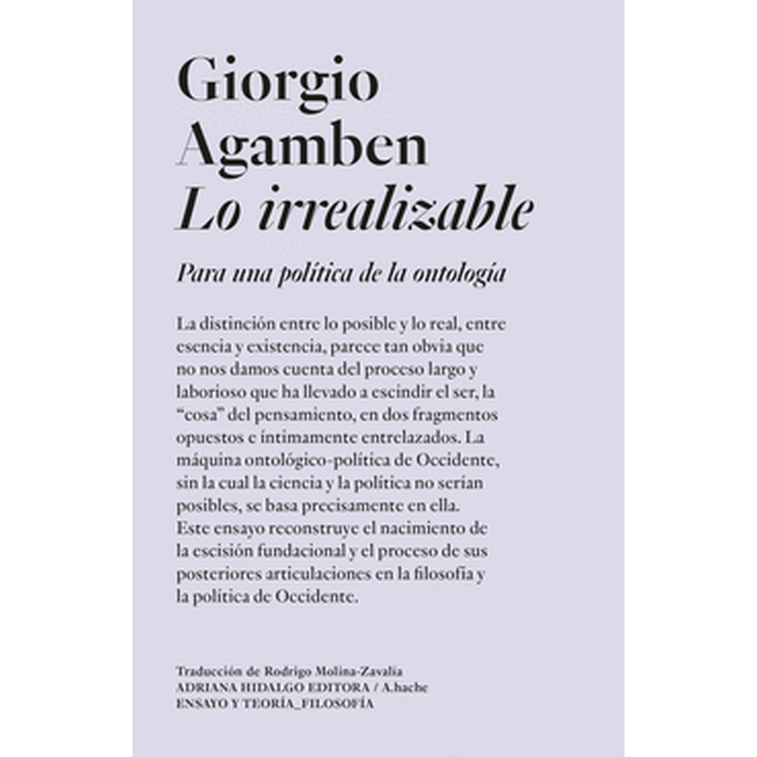 Agamben reconstruye el nacimiento de la división entre lo real y lo posible entre la esencia y la existencia en la filosofía y la política de Occidente. La distinción entre lo posible y lo real entre esencia y existencia parece tan obvia que no nos damos cuenta del proceso largo y laborioso que ha llevado a escindir el ser la cosa del pensamiento en dos fragmentos opuestos e íntimamente entrelazados. La máquina ontológico política de Occidente sin la cual la ciencia y la política no serían posibles se basa precisamente en ella. Este ensayo reconstruye el nacimiento de la escisión fundacional y el proceso de sus posteriores articulaciones en la filosofía y la política de Occidente. Edición: 1 Idioma: ESPAÑOL 232 Páginas